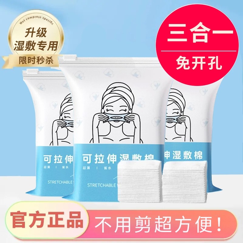开口湿敷棉三合一可拉伸敷脸专用化妆棉纱布脸部卸妆棉巾开孔眼部
