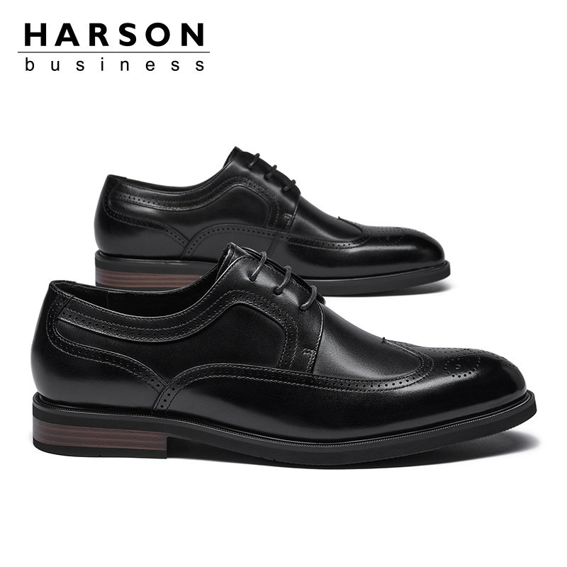 哈森男鞋秋季皮鞋男英伦布洛克鞋商务正装男士皮鞋透气真皮鞋子男