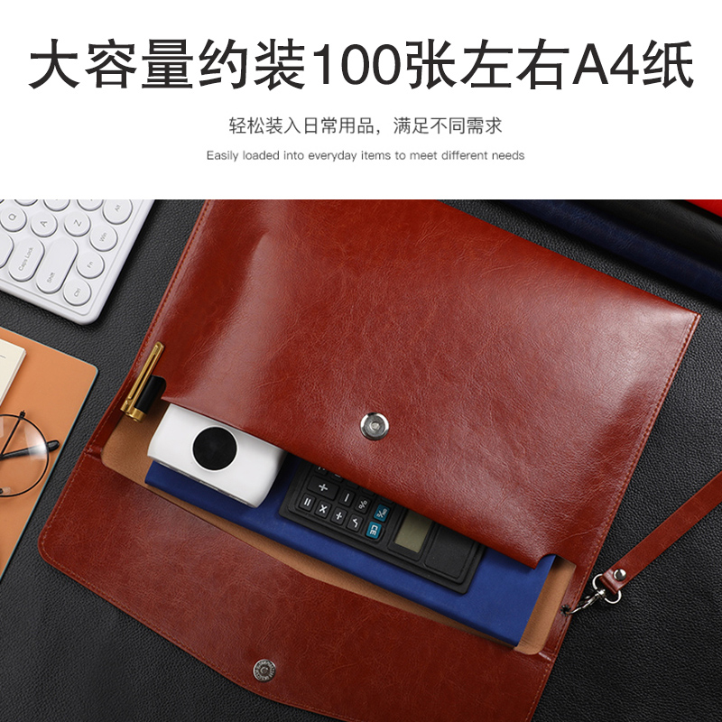 A4皮质文件袋档案袋文件包A5拉链加厚防水资料袋按扣商务公文袋办公合同票据收纳手提便携大容量定制可印logo