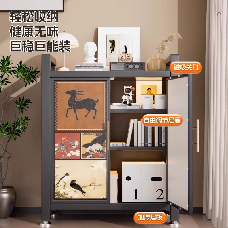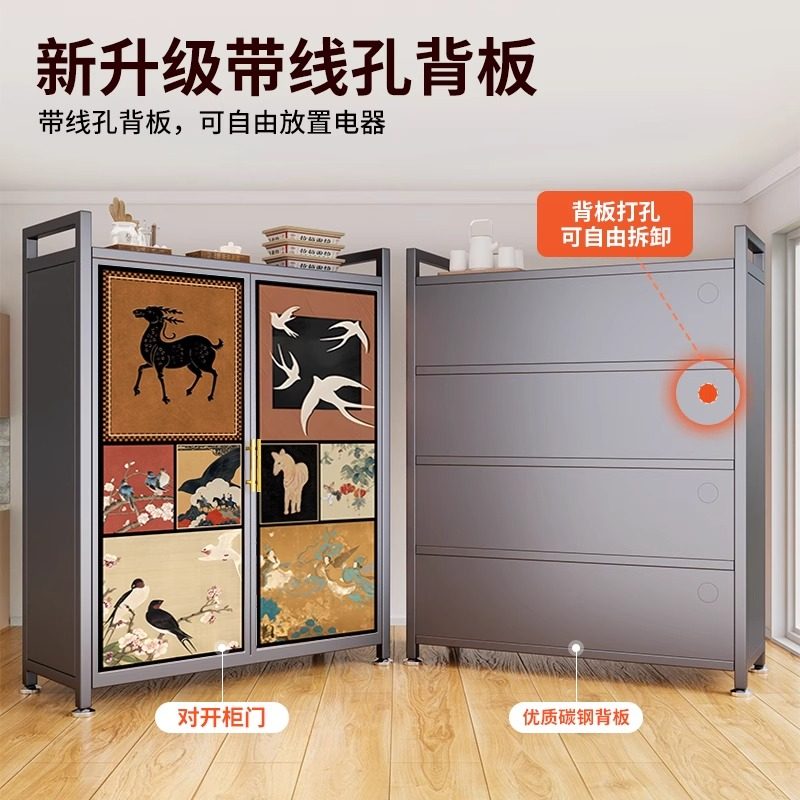 中古风收纳柜客厅卧室厨房靠墙一体书柜衣柜橱柜落地金属储物阳台
