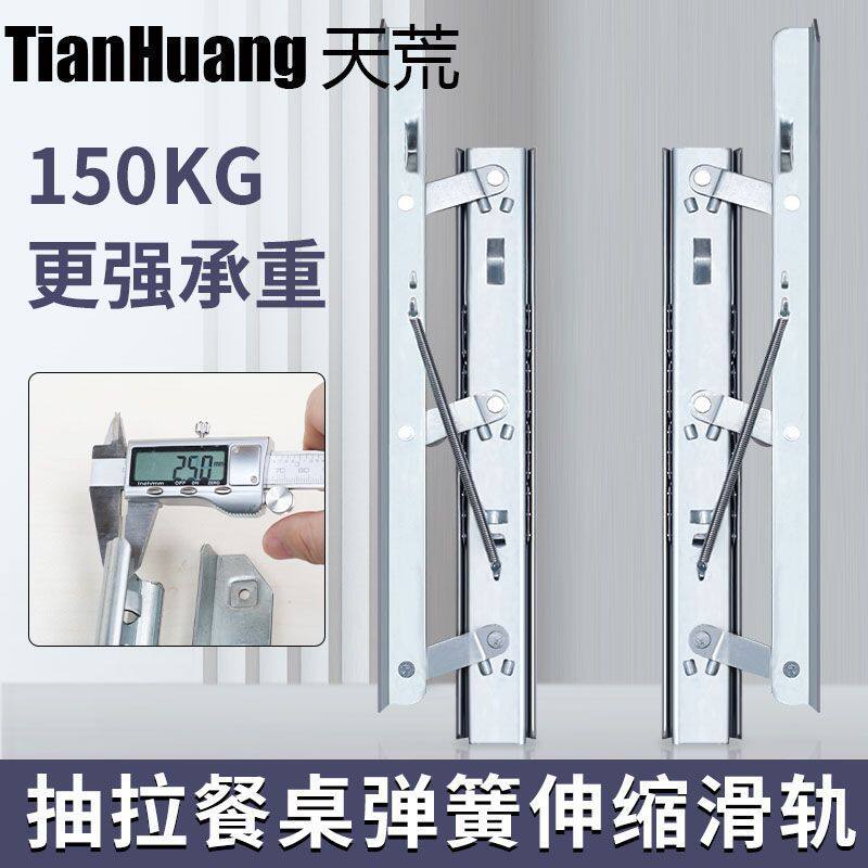 餐台伸缩轨道滑轨折叠升降推拉餐桌五金重型导轨隐形收缩抽拉导轨