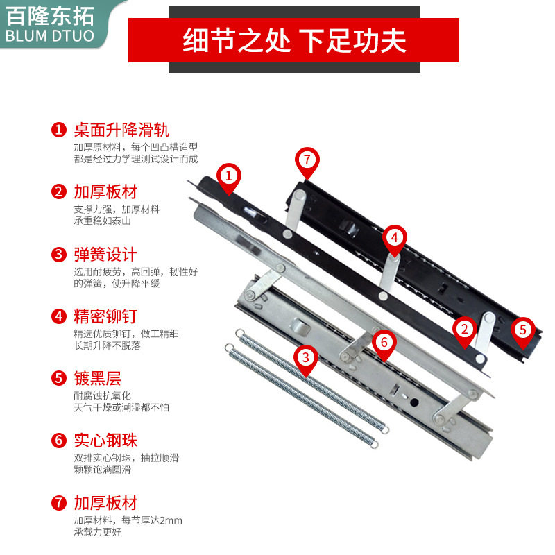 餐台伸缩轨道滑轨折叠升降推拉餐桌五金重型导轨桌面隐形跳台配件