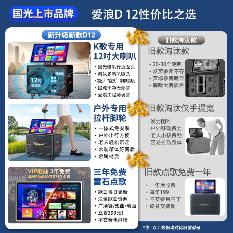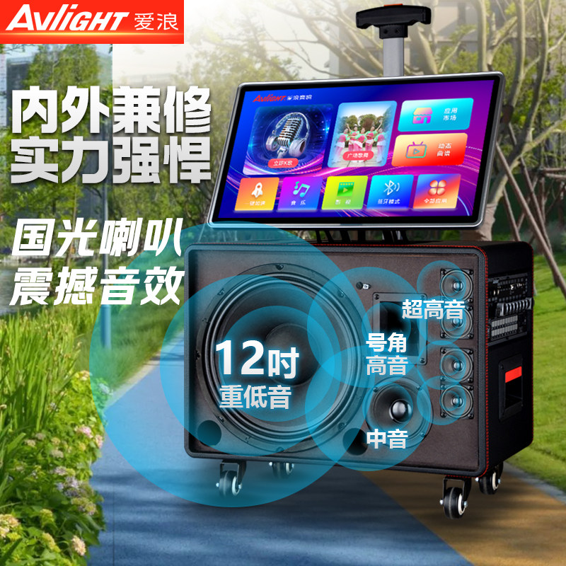 爱浪户外K歌广场舞便携式音箱家庭Ktv音响套装卡拉OK点唱一体机