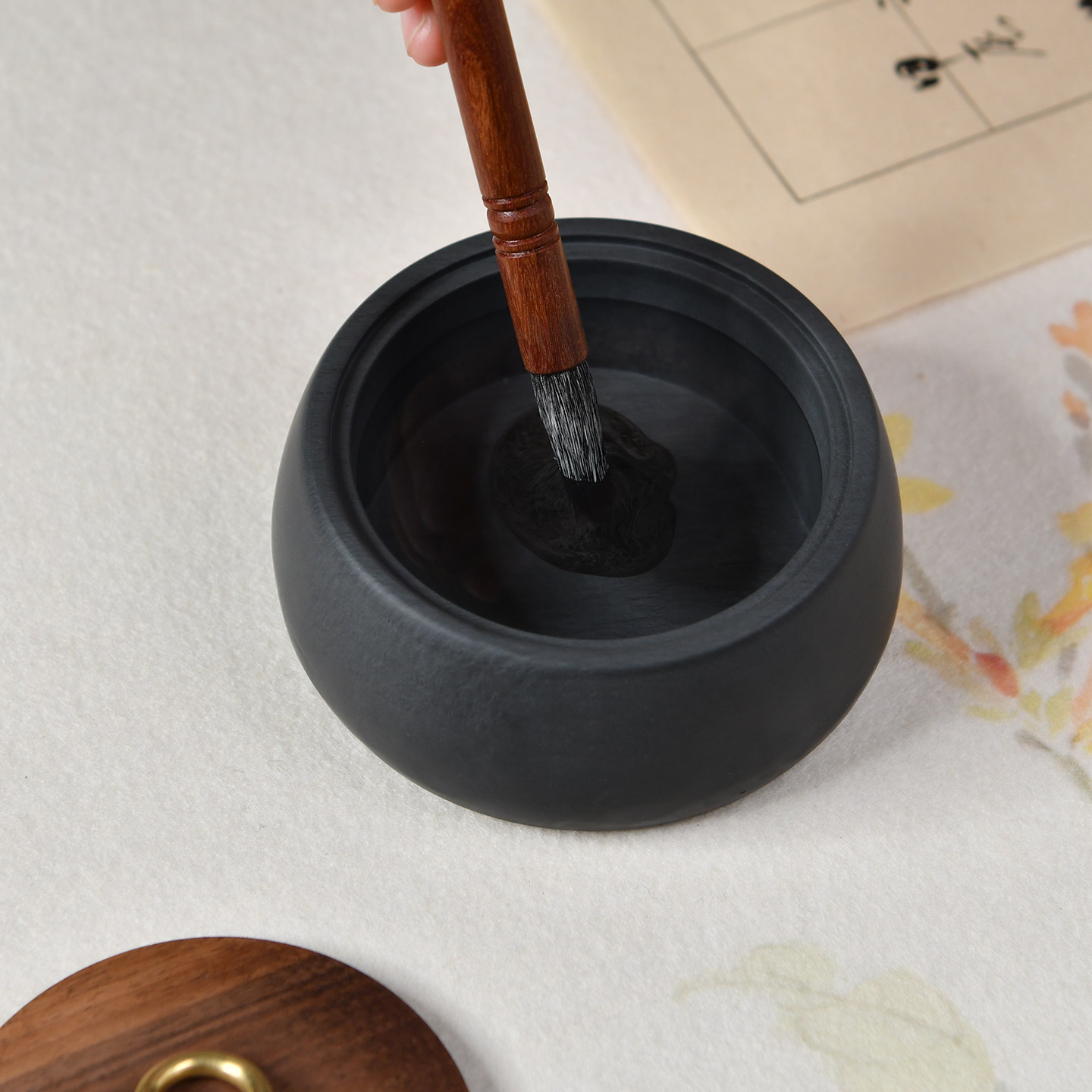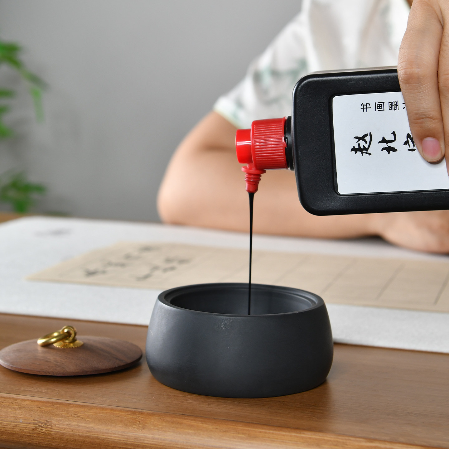 赵北书法专用砚台天然原石安徽歙砚可研墨大容量砚池毛笔书法墨盒带盖不干墨文房四宝笔墨纸砚摆件墨盒墨罐