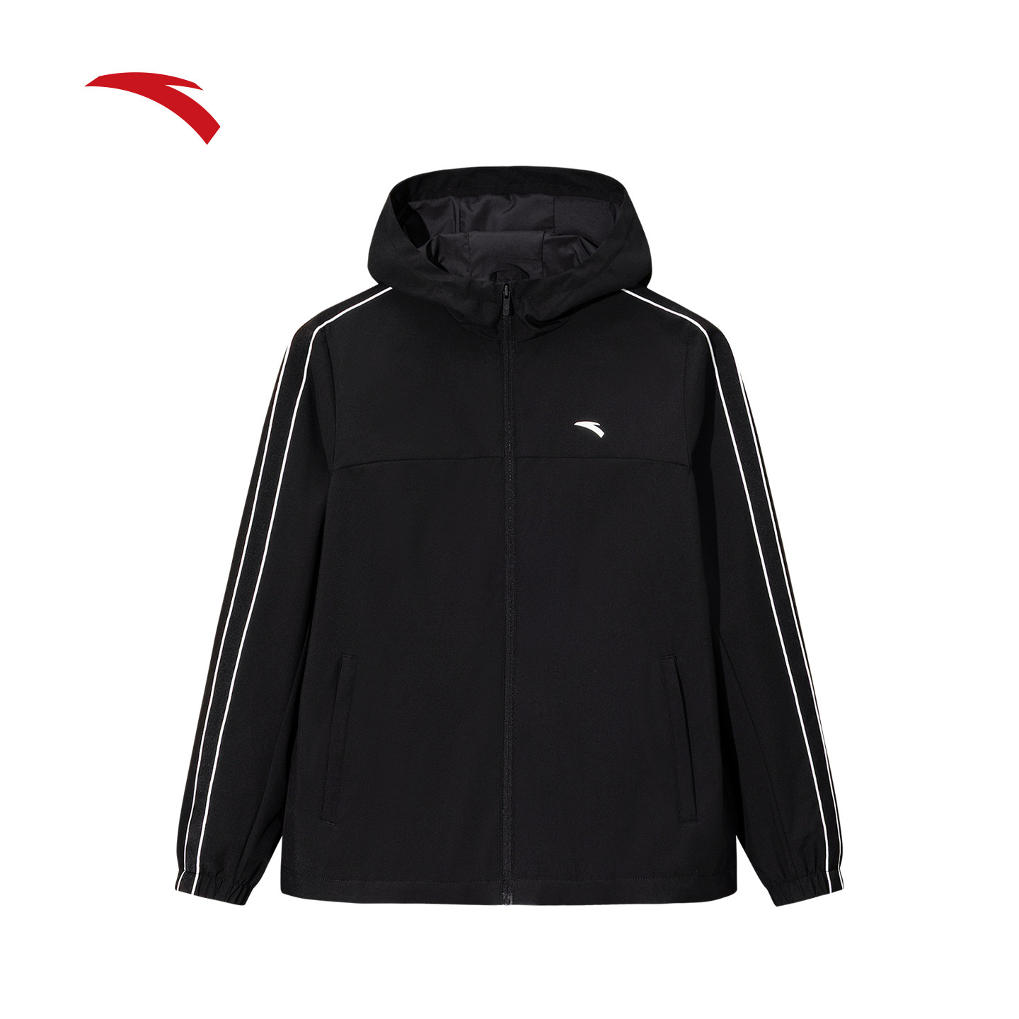 特步防泼水夹克外套男春秋季户外风衣连帽黑色上衣防风运动训练服