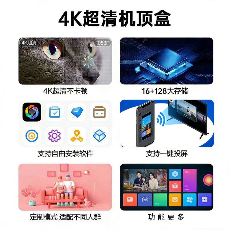 智能全网通4K高清家用电视盒子手机投屏器无线网络wifi电视机顶盒