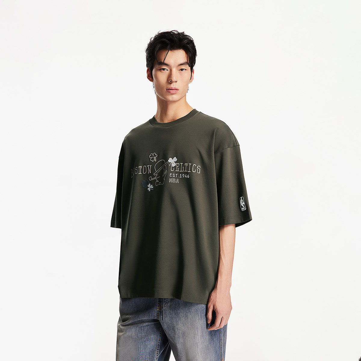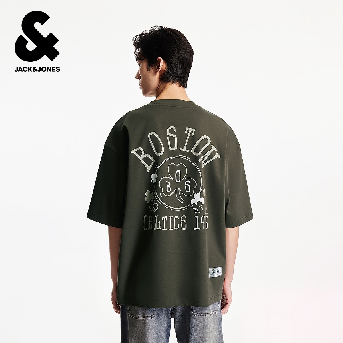 杰克琼斯男装NBA联名款秋季新款纯棉篮球logo刺绣日常简约短袖T恤