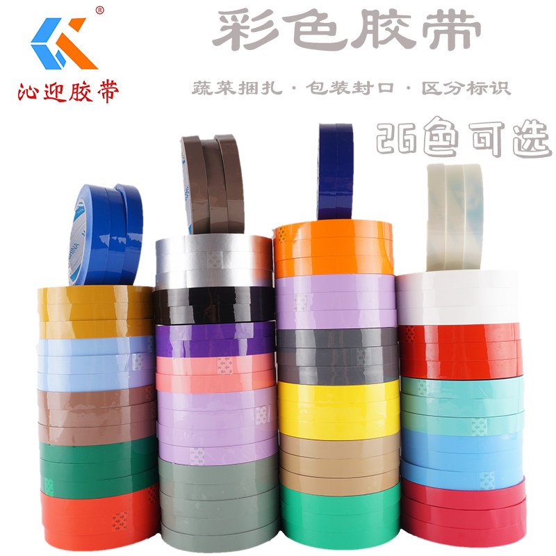 沁迎彩色透明胶带18MM包装封口胶布窄胶纸小胶布定制logo批发印字文创手工混色超市蔬菜捆绑扎胶带绿色红蓝白