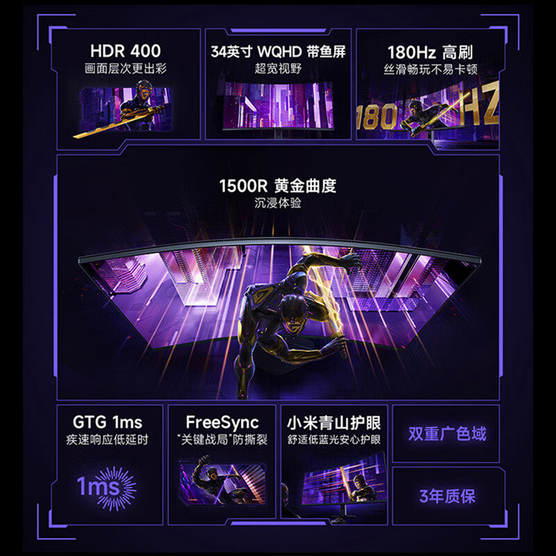 小米Redmi 显示器G34WQ 2026款带鱼屏34英寸 180Hz电竞曲面显示屏