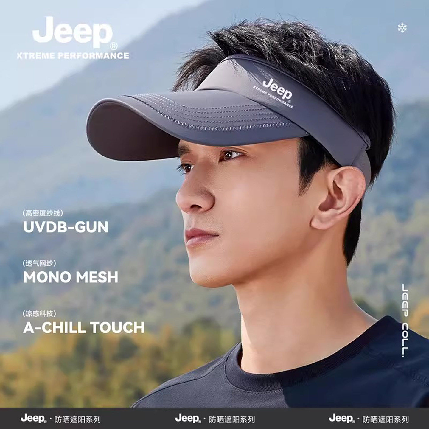 jeep吉普夏季男士防晒面纱空顶帽户外徒步电动车护颈鸭舌太阳帽子