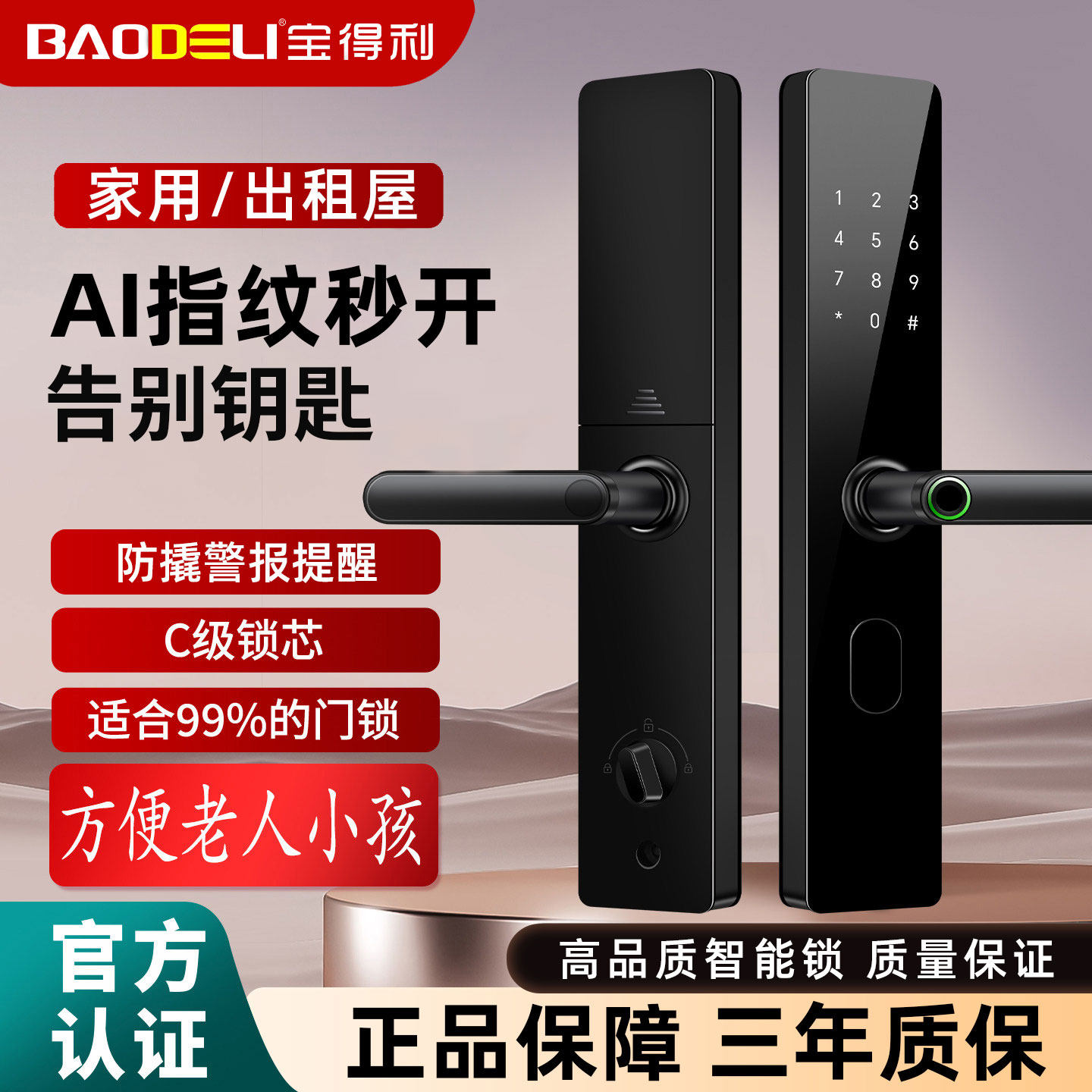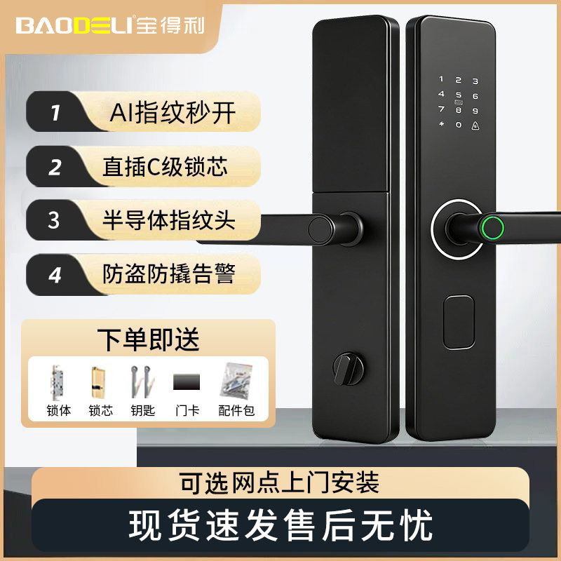 指纹密码锁家用门锁防盗入户门智能C级锁芯执电池上门远程玻璃