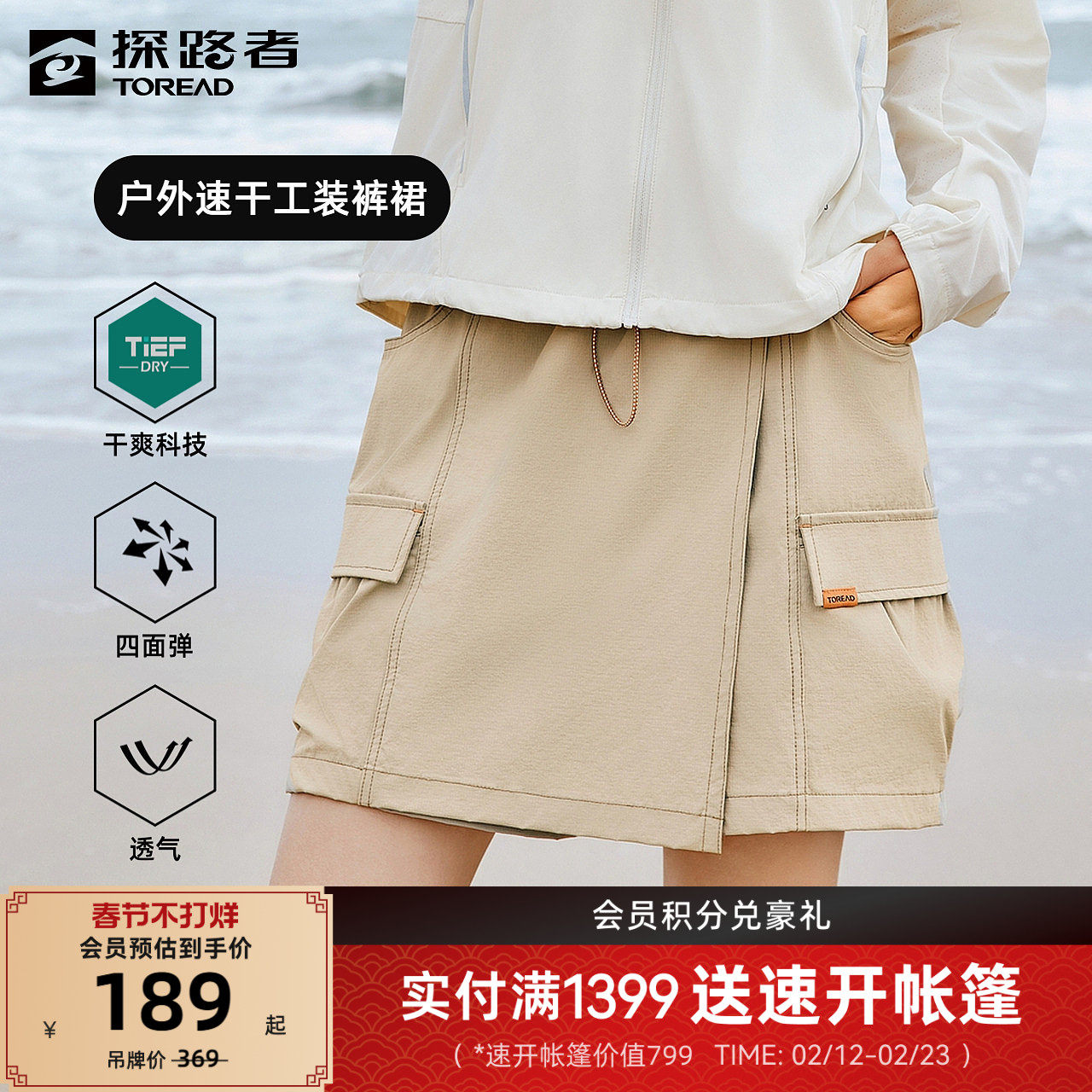 探路者速干裤女春夏季新款户外轻量高弹舒适透气工装休闲短裤裙