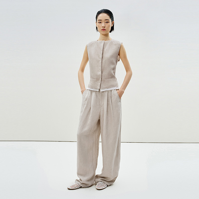 【迅系列】LESS环保亚麻短款马甲女通勤都市风西装马甲2P5511270