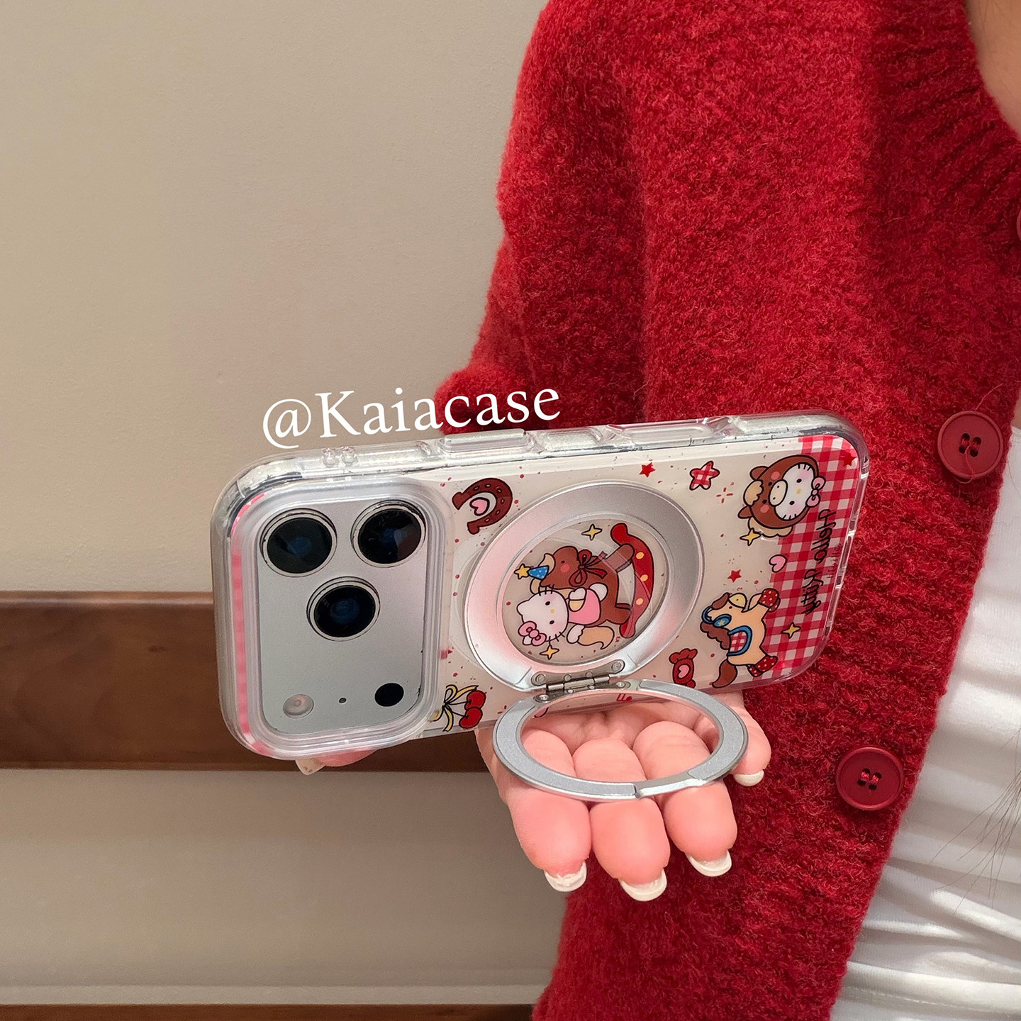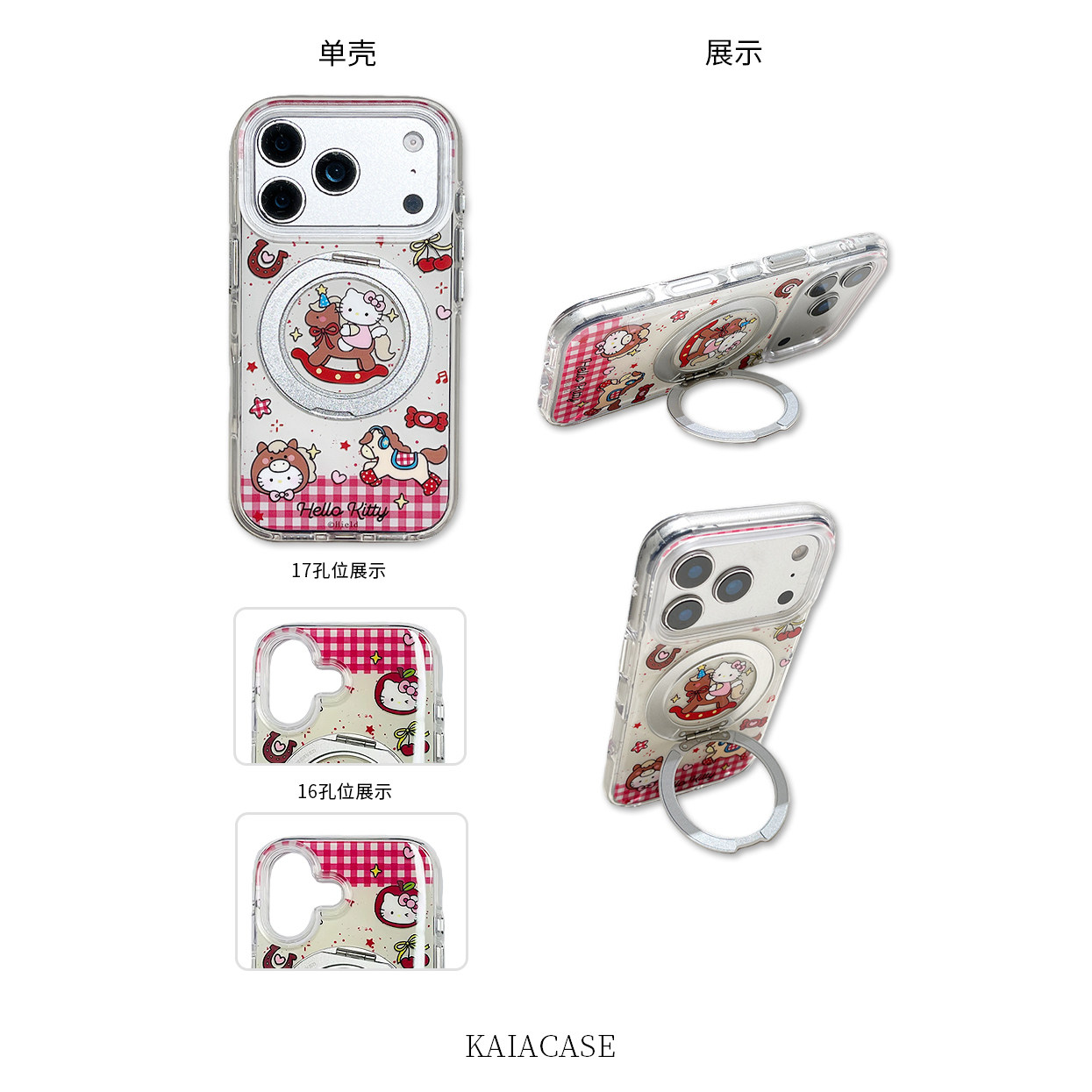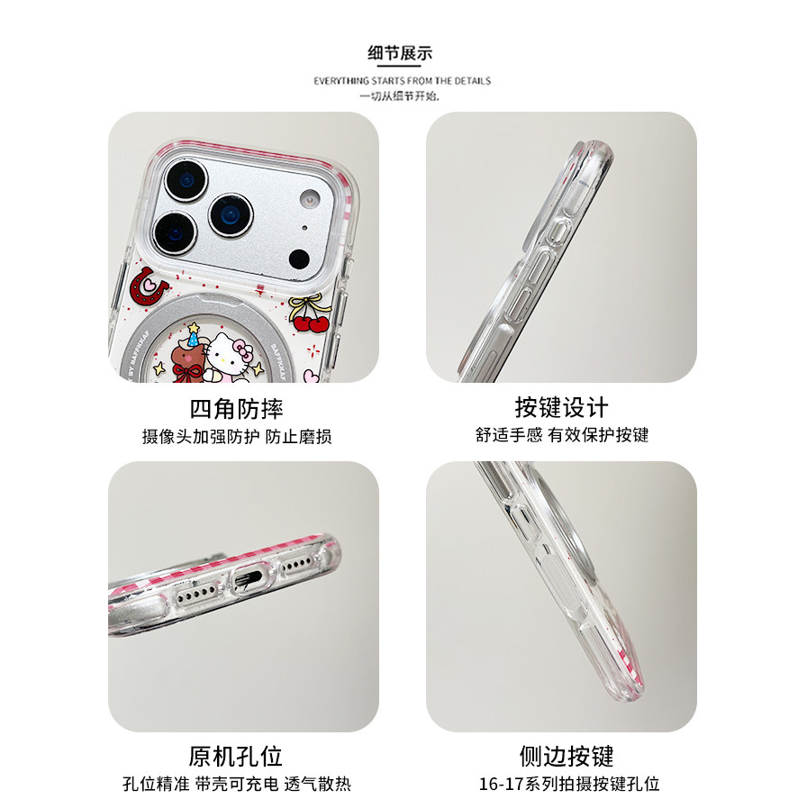 kaia 软萌可爱卡通哈喽kt骑马适用苹果17promax手机壳iphone16pro新款13女14pro旋转支架15pro全包防摔手机套