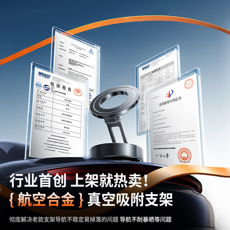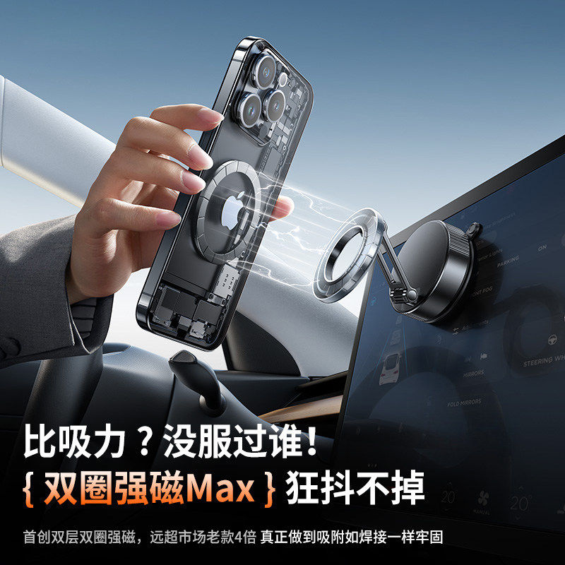 真空吸附磁吸车载手机支架2025新款吸盘车内导航手机架magsafe无线磁吸伸缩折叠便携架子墙壁通用神器
