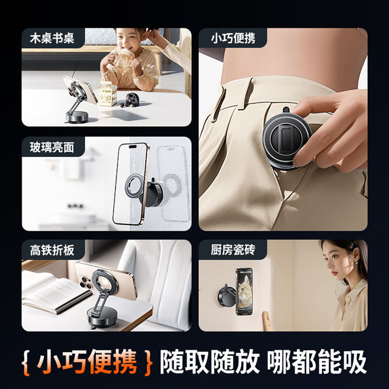 2026新款磁吸手机支架旋转折叠真空吸盘办公桌面墙壁中控台magsafe磁吸车载支架汽车导航专用吸附支撑