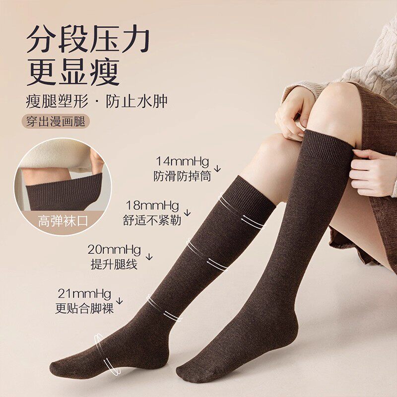过膝袜子女秋冬羊毛长筒袜加厚保暖护膝大腿袜压力高筒袜