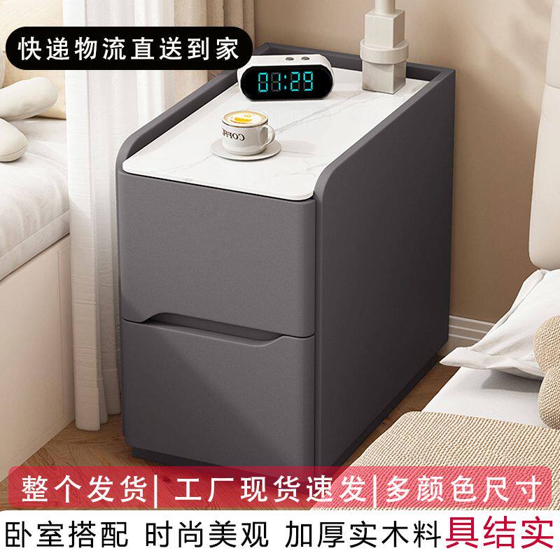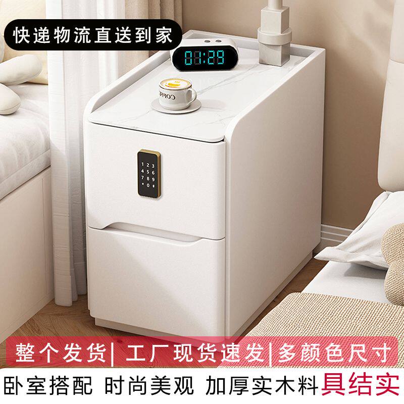 智能床头柜卧室家用小型极窄迷你储物柜小户型免安装带锁床边柜子