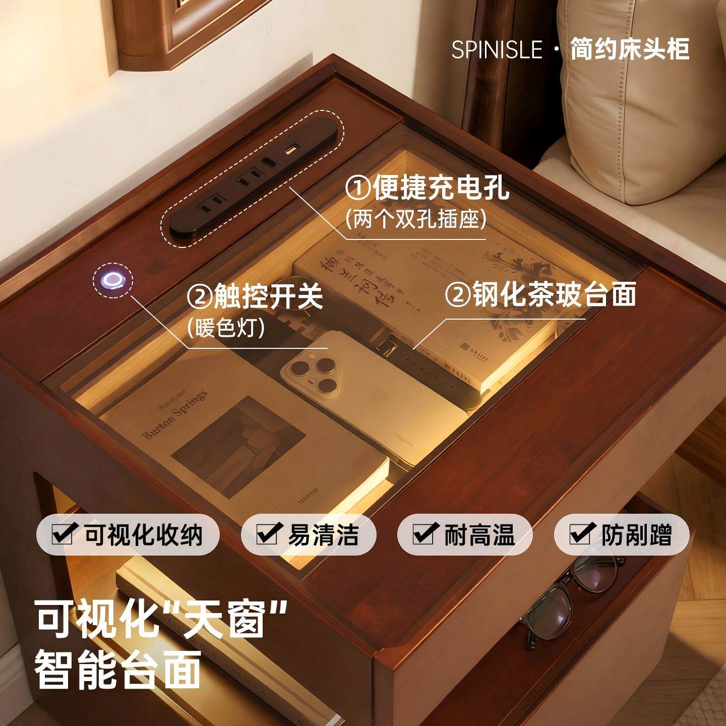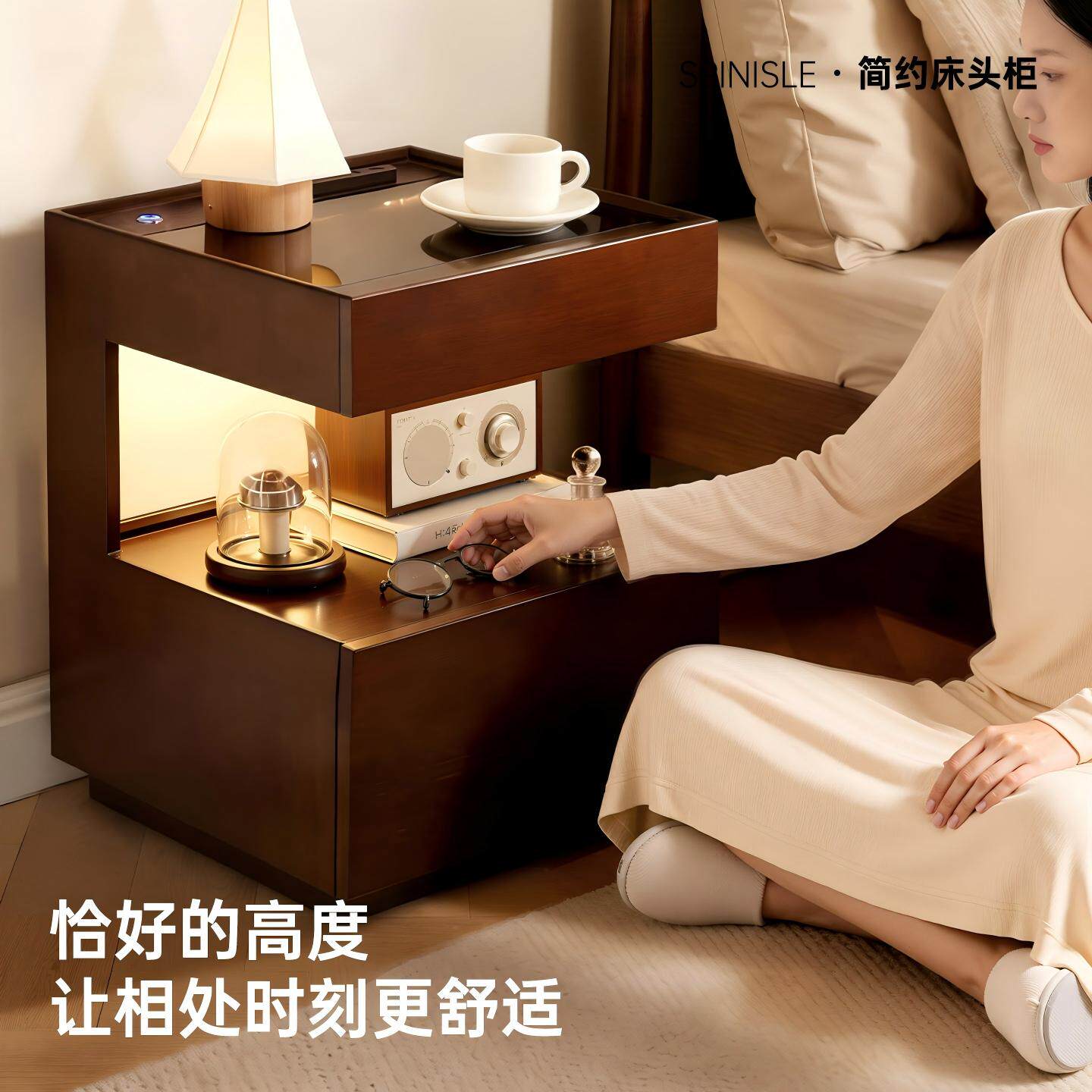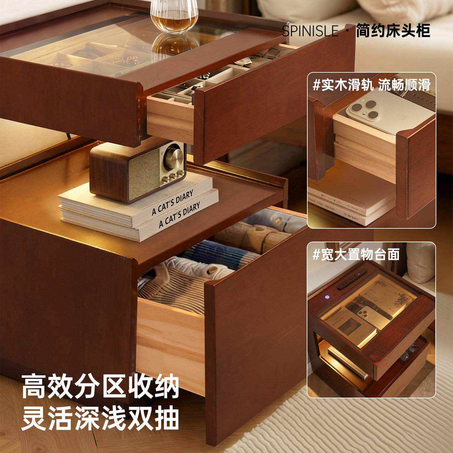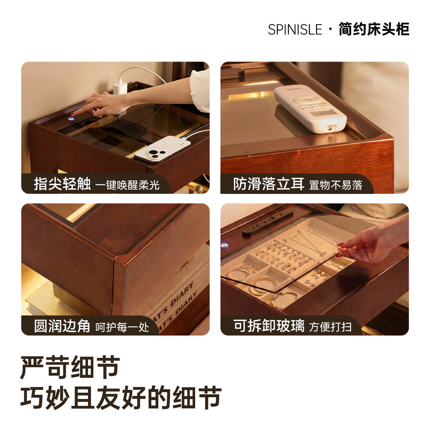 实木床头柜家用卧室置物架2026新款轻奢高级感悬浮智能床边储物柜