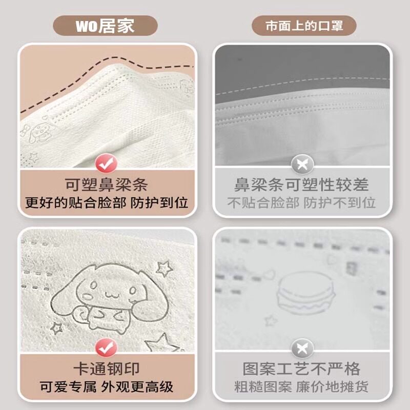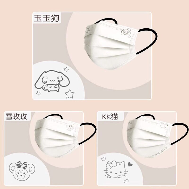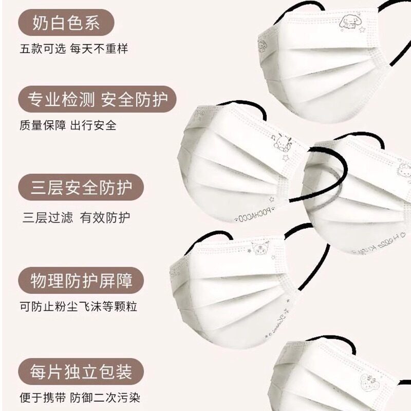 奶白色口罩女高颜值2024一次性夏季薄款透气可爱卡通成人粉尘防护