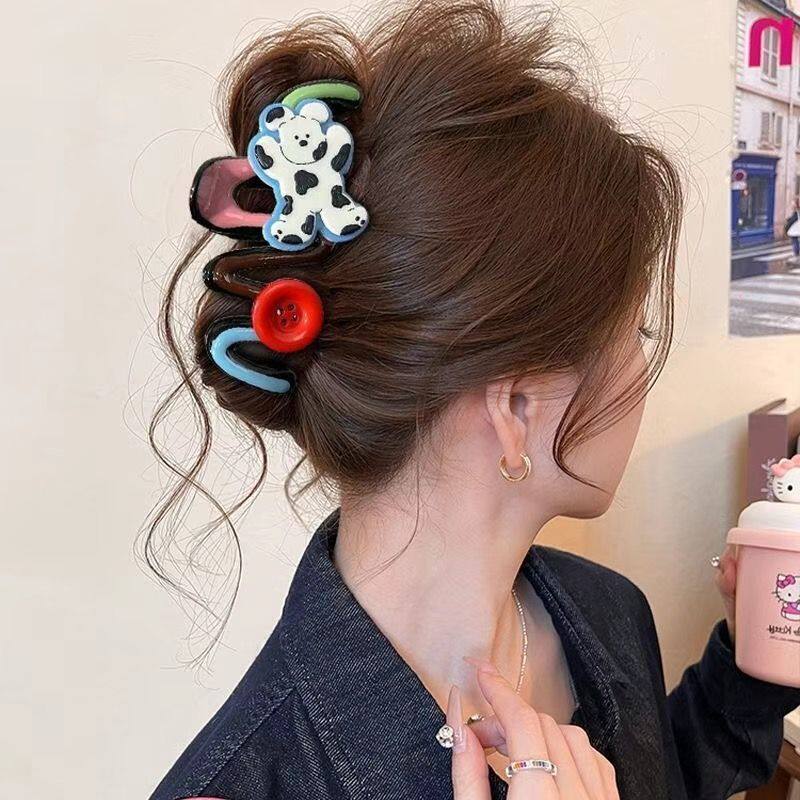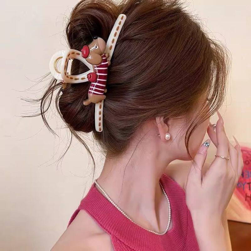 卡通抓夹鲨鱼夹女高级感2025新款后脑勺盘发大号发量动物可爱小狗