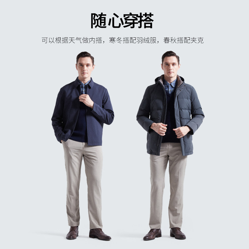 鸭鸭男士羽绒马甲多口袋爸爸秋冬季内穿坎肩V领背心中年鸭绒马夹