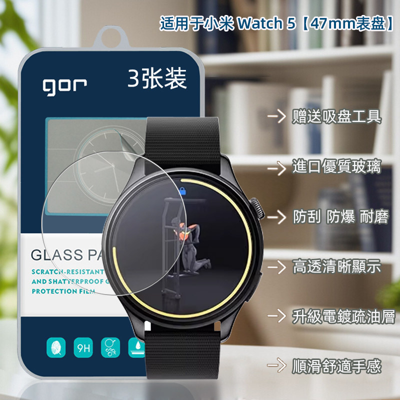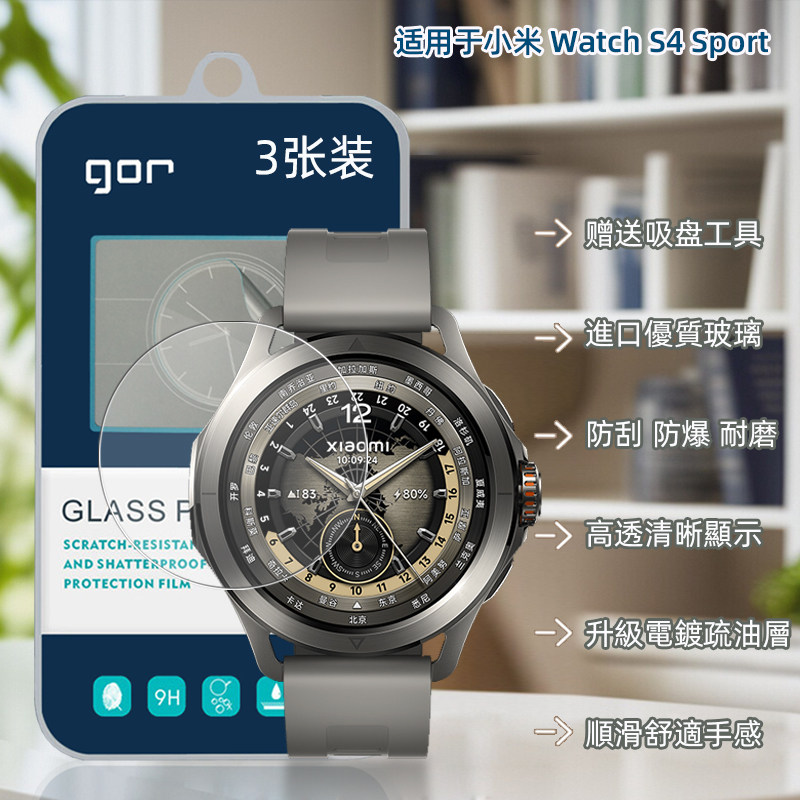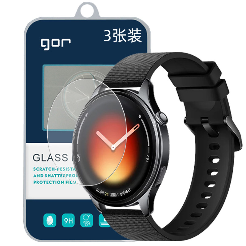 GOR适用小米Watch高S5清S4透5明S1手表Sport盘pro荧屏幕蓝宝石晶瓷2.5D弧边旭硝防指纹摔钢化玻璃保护硬贴膜