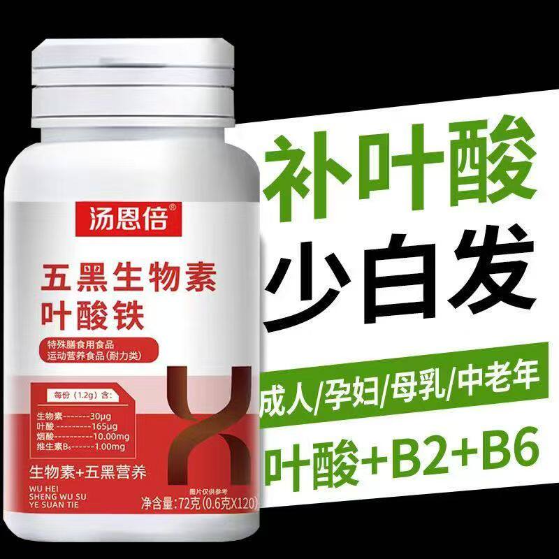 汤恩倍五黑生物素h铁叶酸片多种维生素b6b7黑发白头脱正品旗舰店