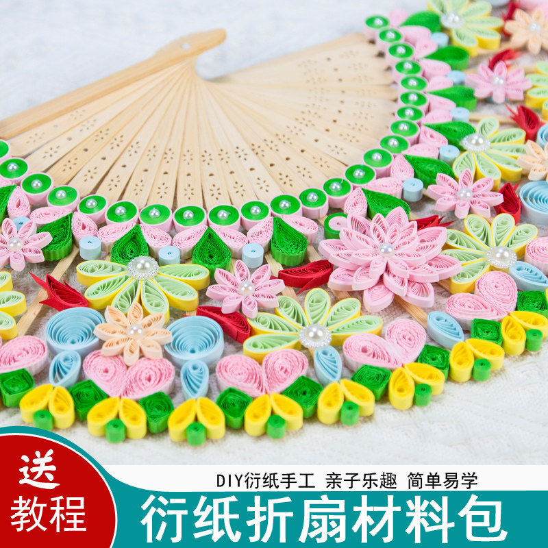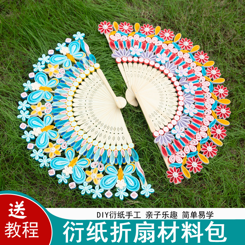 新年手工衍纸折扇diy材料包中国风衍纸扇文创伴手礼品扇子团建