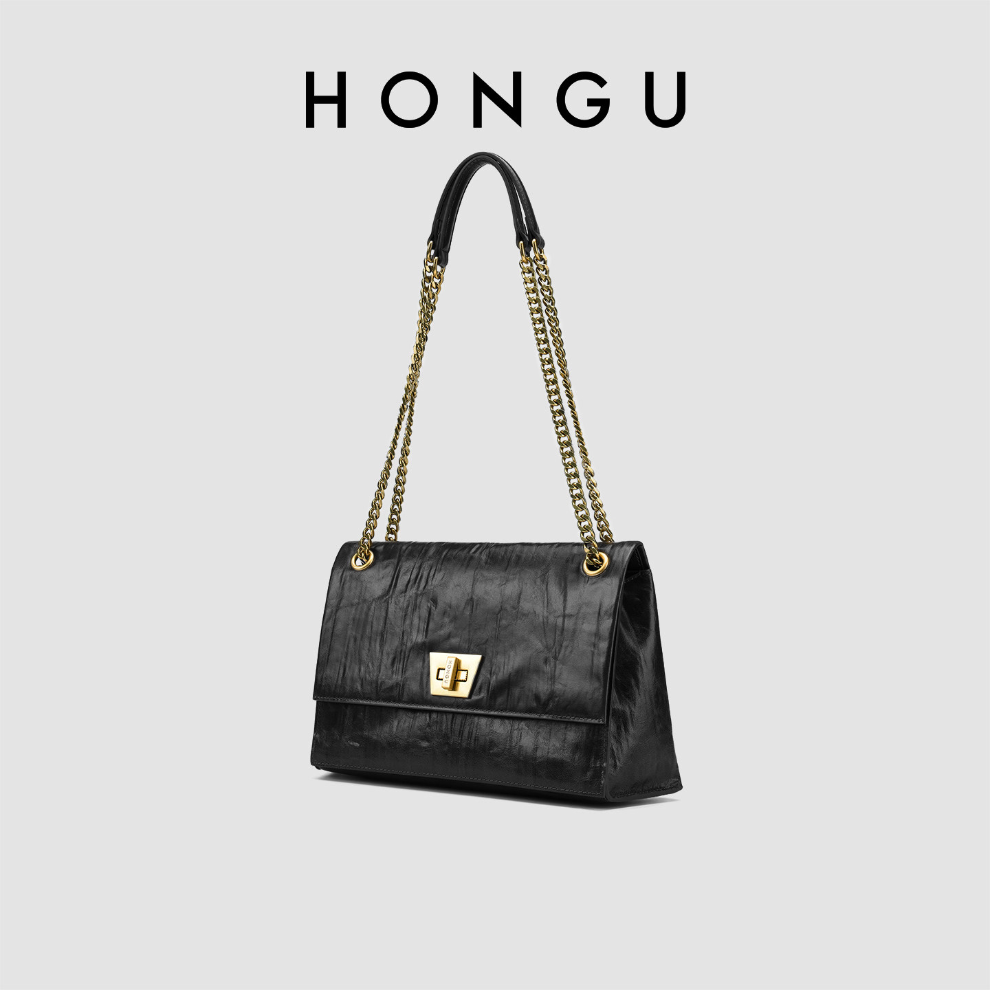 红谷包包2026新款油蜡真皮单肩腋下包复古高级感链条斜挎包女士包