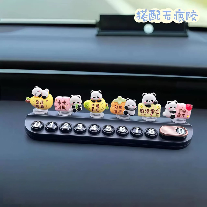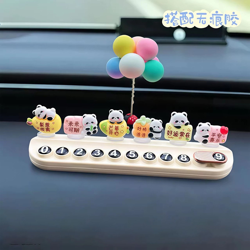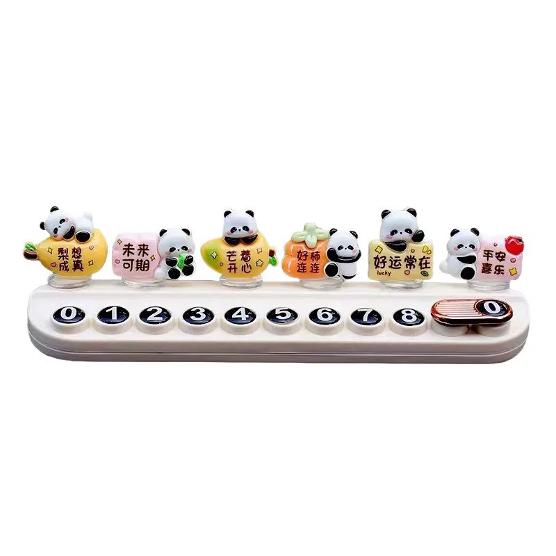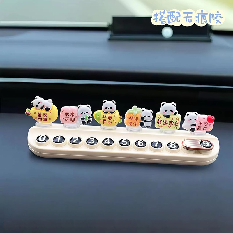 2026新款挪车电话牌熊猫汽车载上临时停移号码显示摆件女生留号器