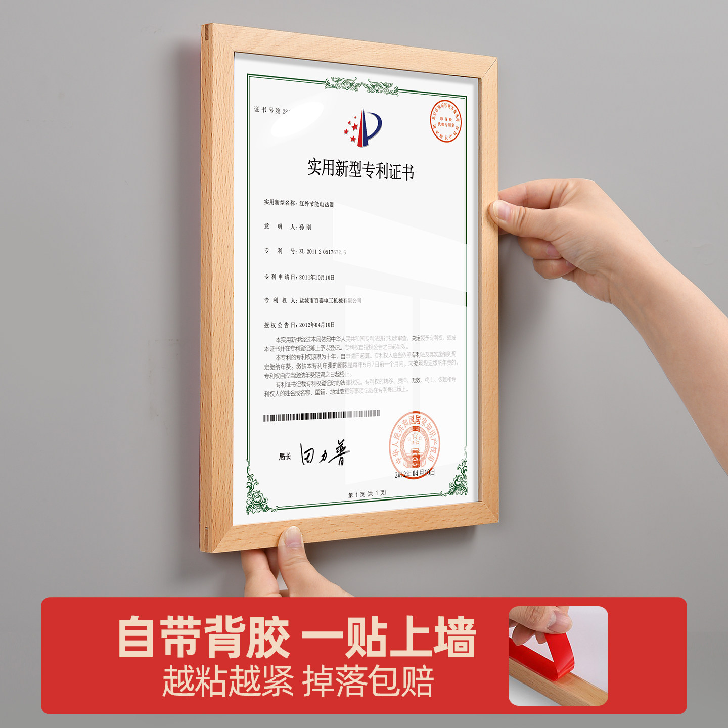 免打孔a4专利证书框奖状证件挂墙展示营业执照框架玻璃相框荣誉墙