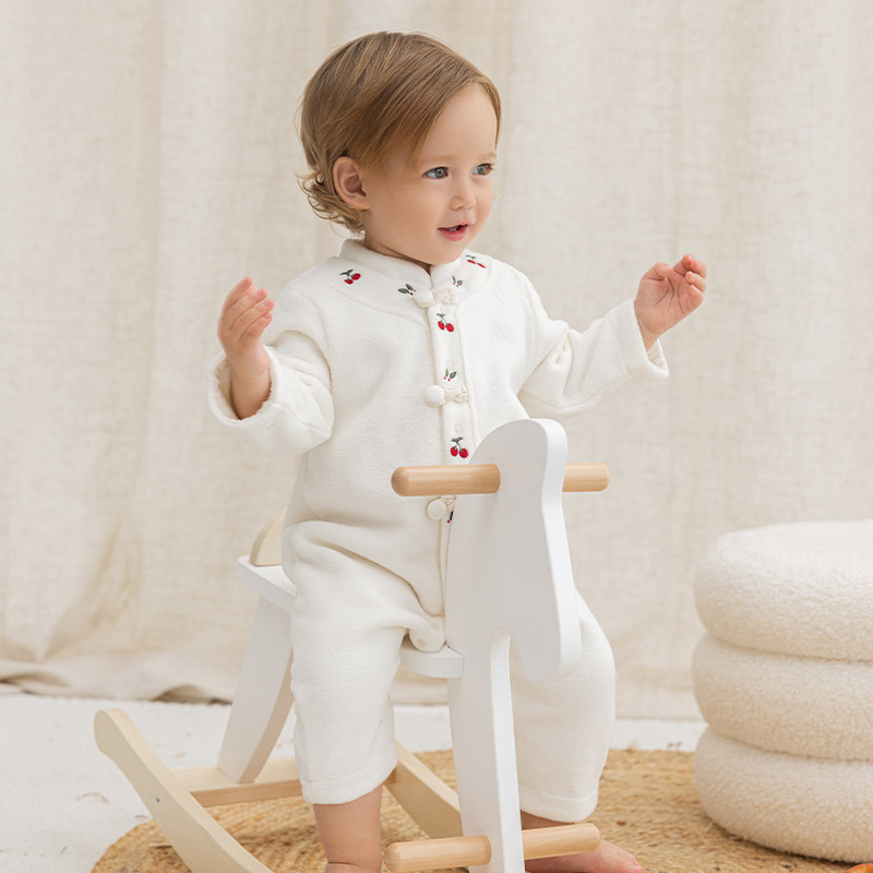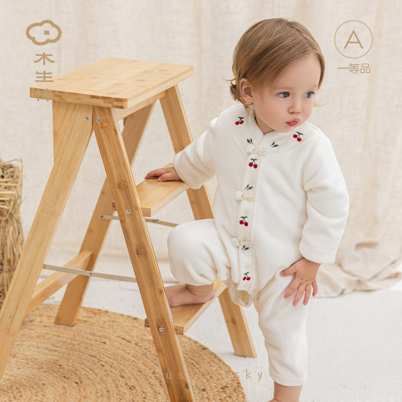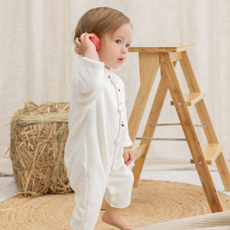 木生棉宝宝摇粒绒连体衣秋冬季婴儿保暖中式盘扣哈衣居家爬爬衣服