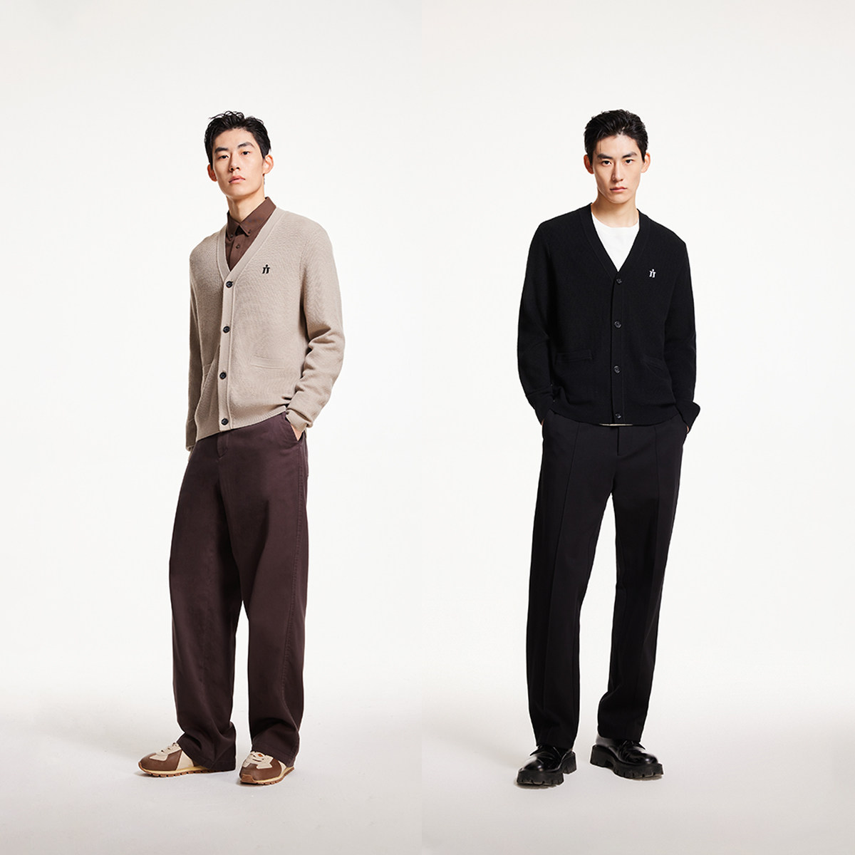 杰克琼斯冬季新款时尚潮百搭舒适日常开衫毛衣V领直筒针织衫男装