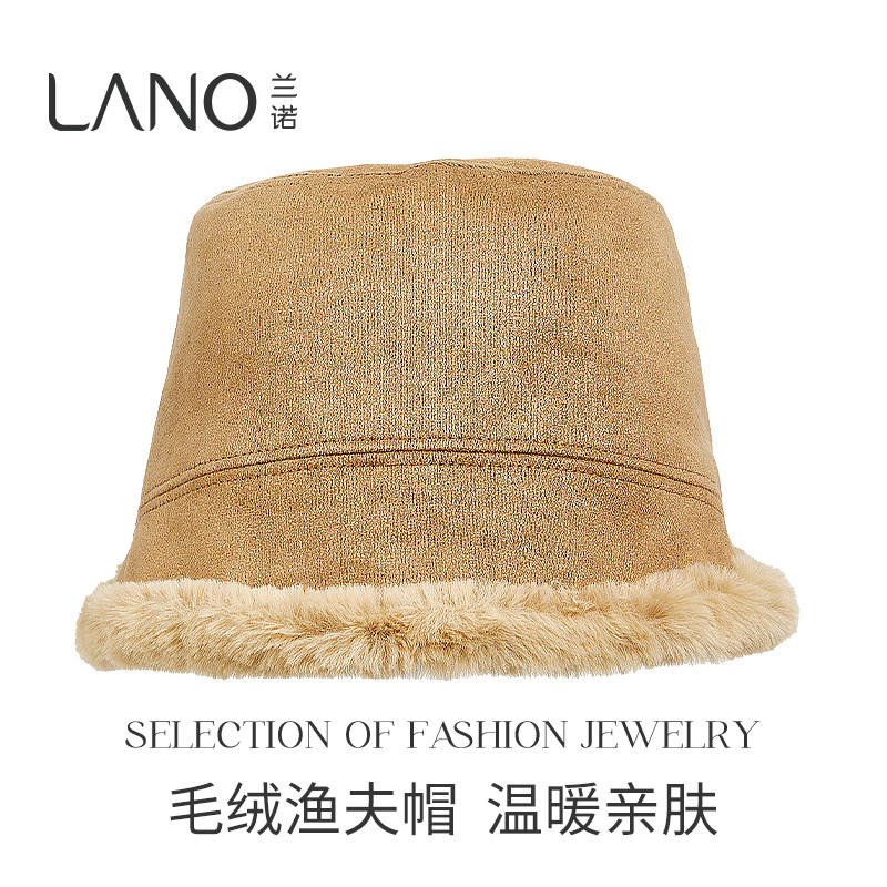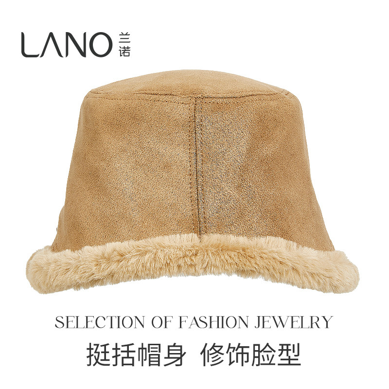 兰诺毛绒渔夫帽女士冬2025新款时尚洋气显脸小适合方圆脸加厚帽子