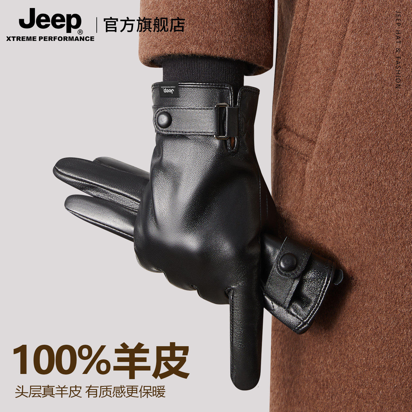 Jeep吉普真皮手套男士冬季羊皮手套加厚保暖防风可触屏骑车户外男