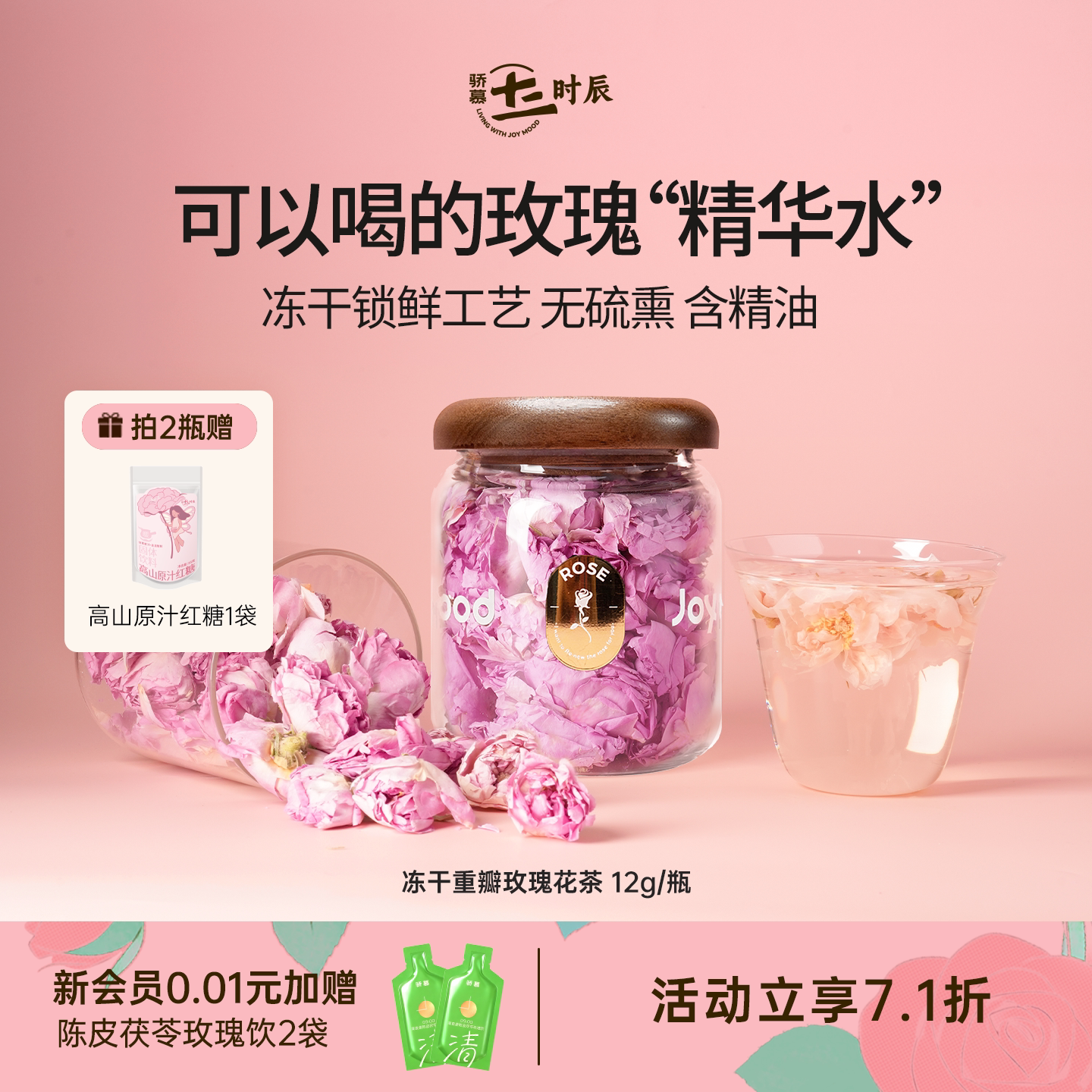【明星同款】骄慕冻干重瓣玫瑰花茶12g/瓶无硫熏无农残冻干玫瑰花