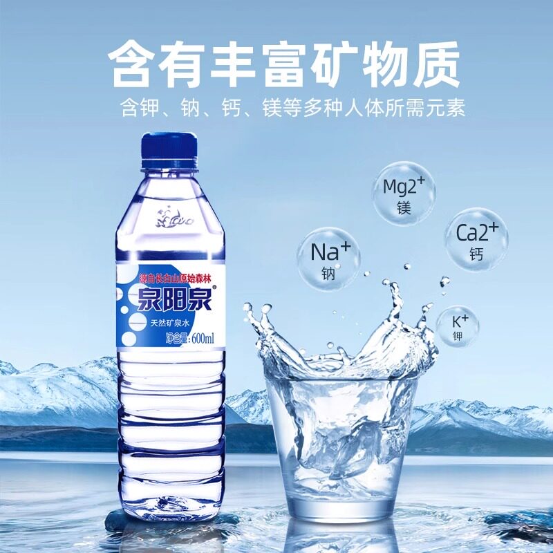泉阳泉长白山天然矿泉水600ml小瓶整箱装弱碱性饮用水山泉瓶装
