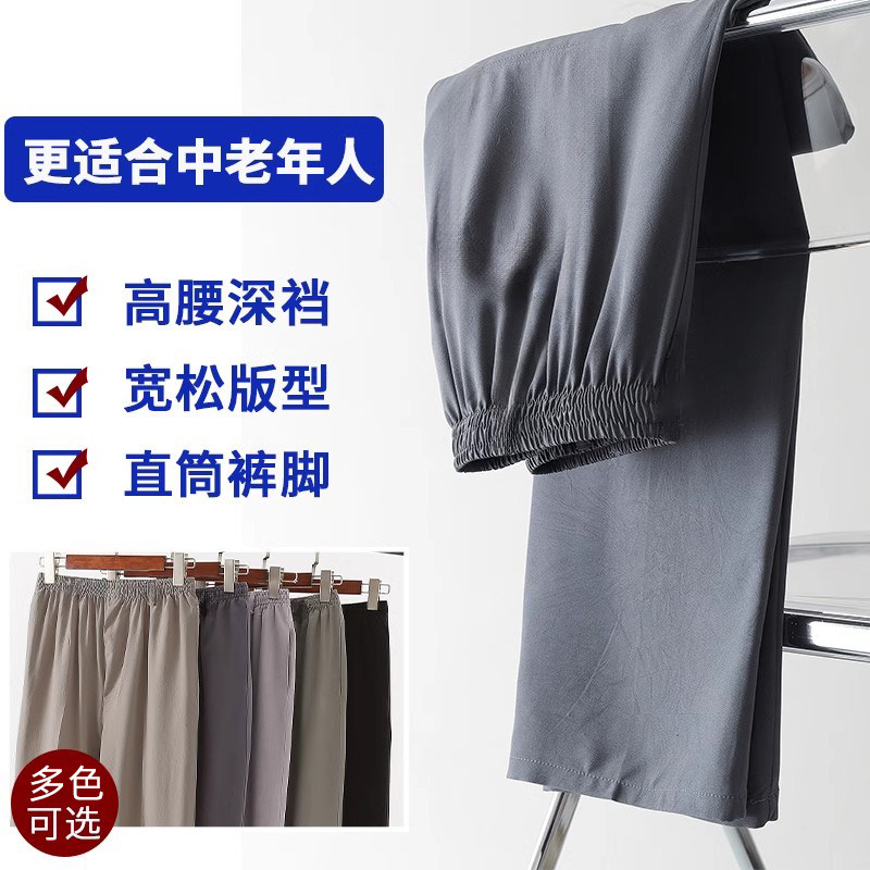 爸爸夏装长裤子中老年人冰丝休闲裤男士爷爷夏季速干裤薄款宽松型