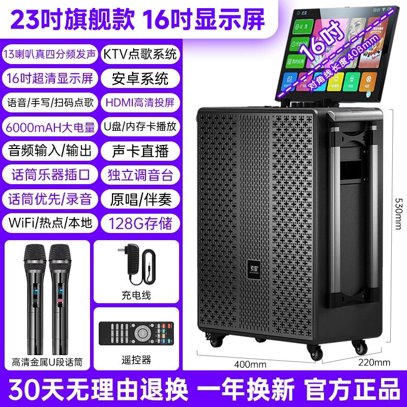 索爱广场舞音响带显示屏户外点唱点歌机k歌一体机家庭ktv音箱套装