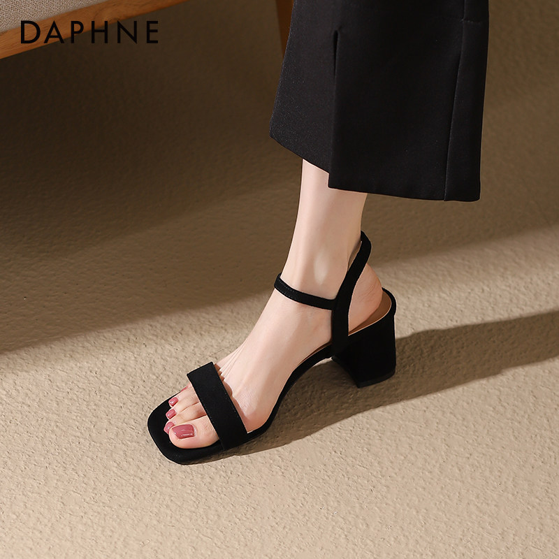 达芙妮凉鞋女2023夏季爆款女鞋一字带凉鞋百搭粗跟方头高跟凉鞋女