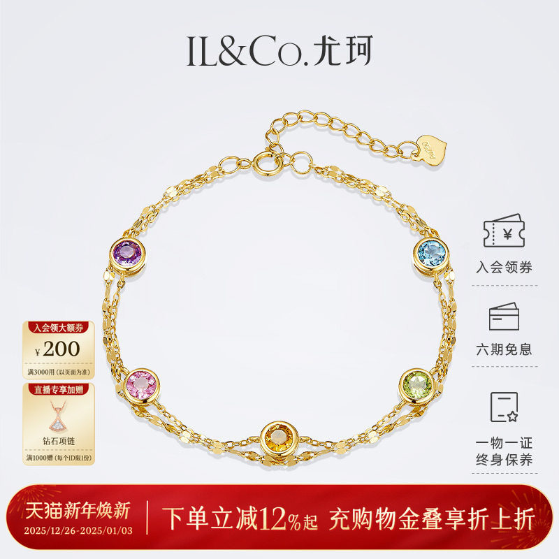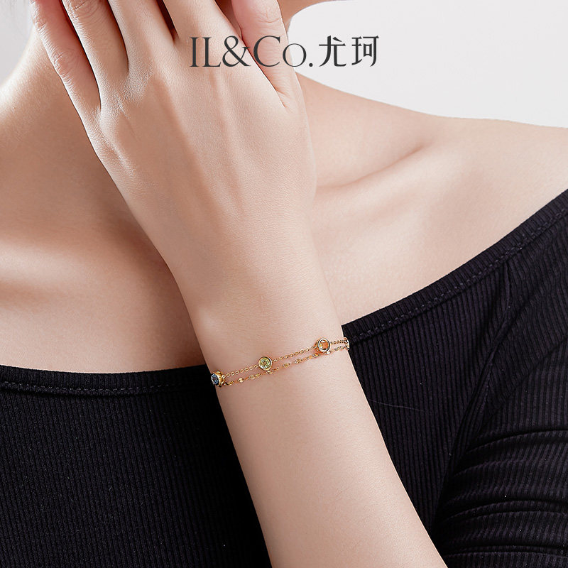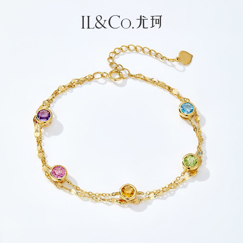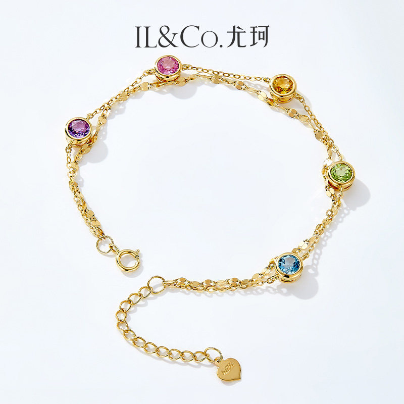 ILCO尤珂「五彩织恋」18K金多色彩宝手链天然碧玺彩宝双层手饰女