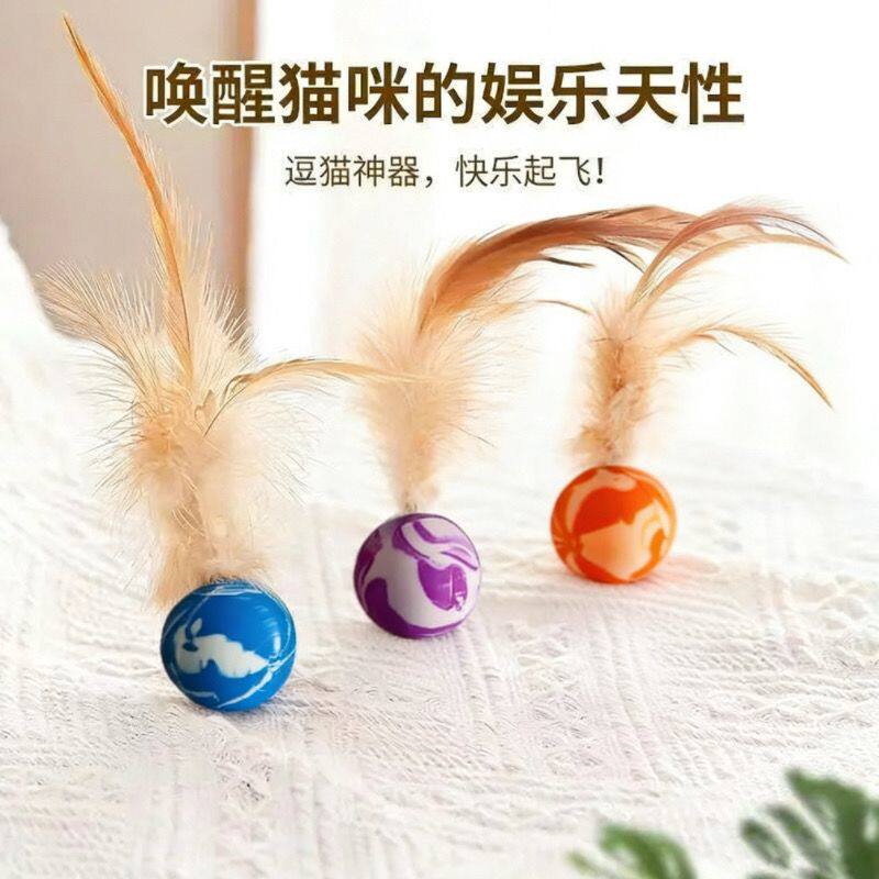 宠物逗猫棒猫玩具羽毛弹力球自嗨球解闷神器消耗体力互动猫咪用品