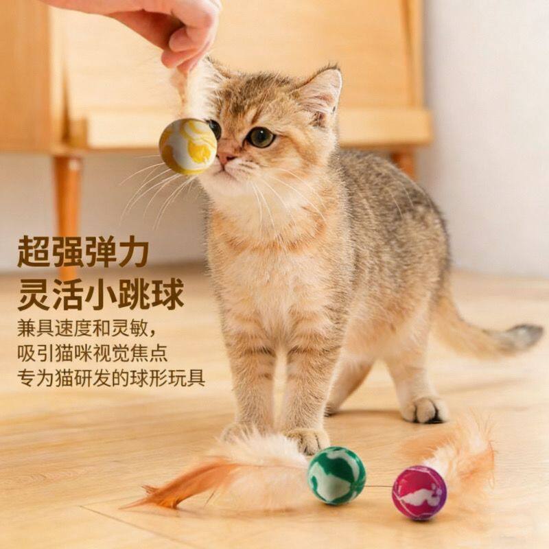 宠物羽毛弹力球猫咪解闷玩具逗猫磨牙趣味神器狗狗布偶猫最爱