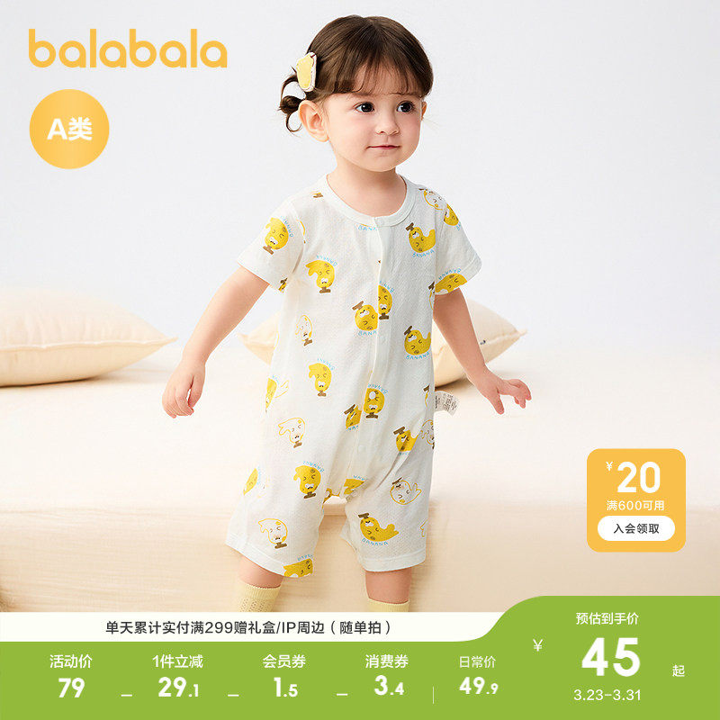 巴拉巴拉童装婴儿连体衣新生儿哈衣睡衣夏装宝宝衣服2026新款全棉