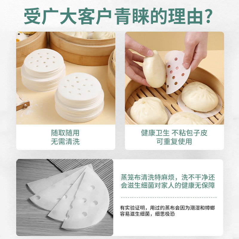 家用蒸笼纸蒸包子垫屉蒸锅蒸馒头一次性防油纸不粘布面包纸托烘焙