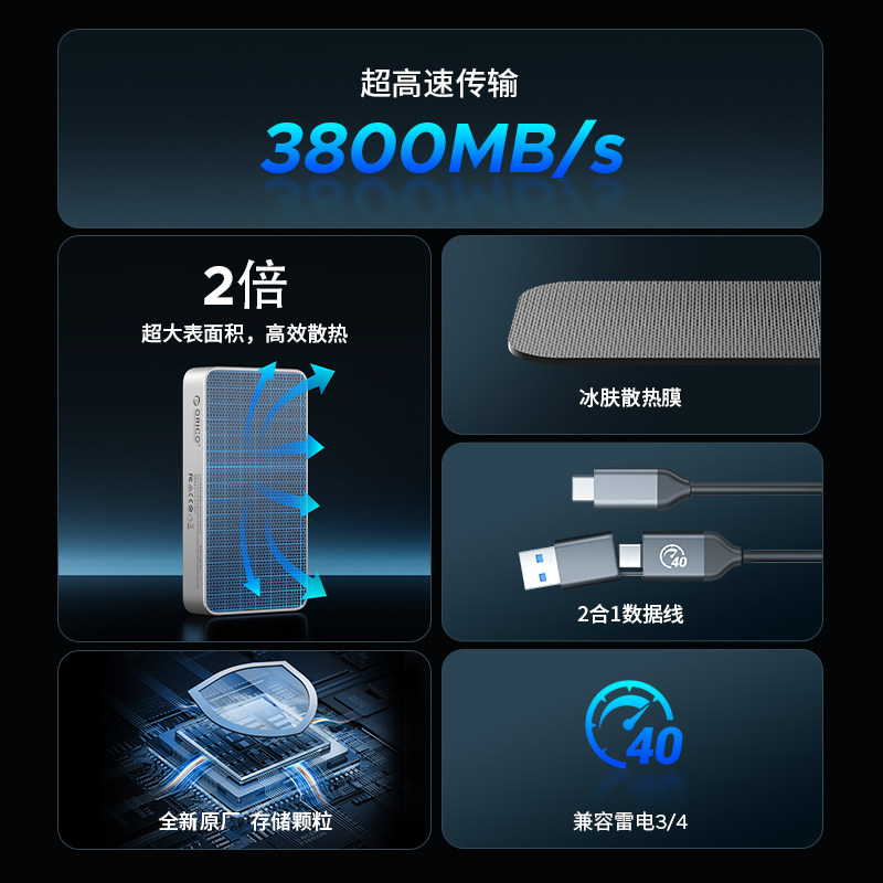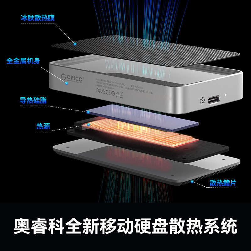 奥睿科雷电4移动硬盘2T大容量手机电脑两用40Gbps外接固态硬盘1T