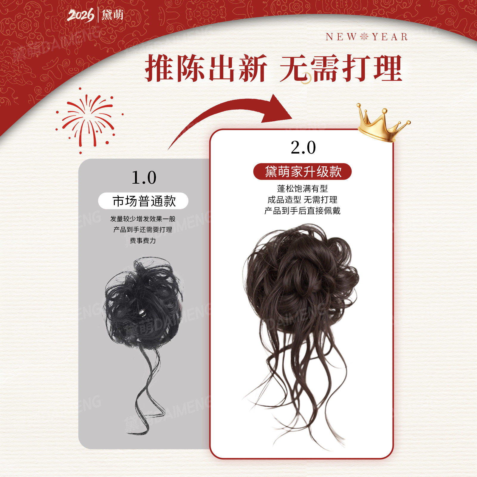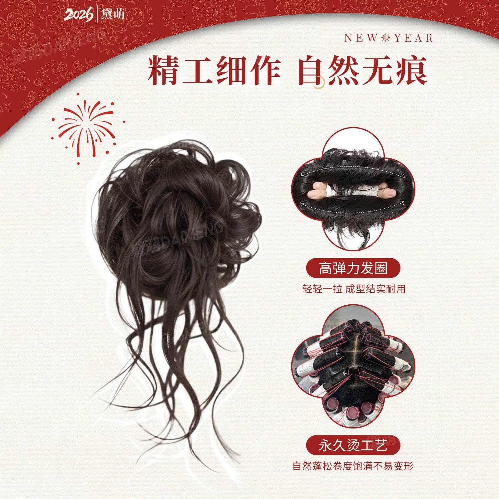 低扎丸子头假发鸡毛头抓夹盘发发包慵懒感造型头饰自然蓬松后脑勺