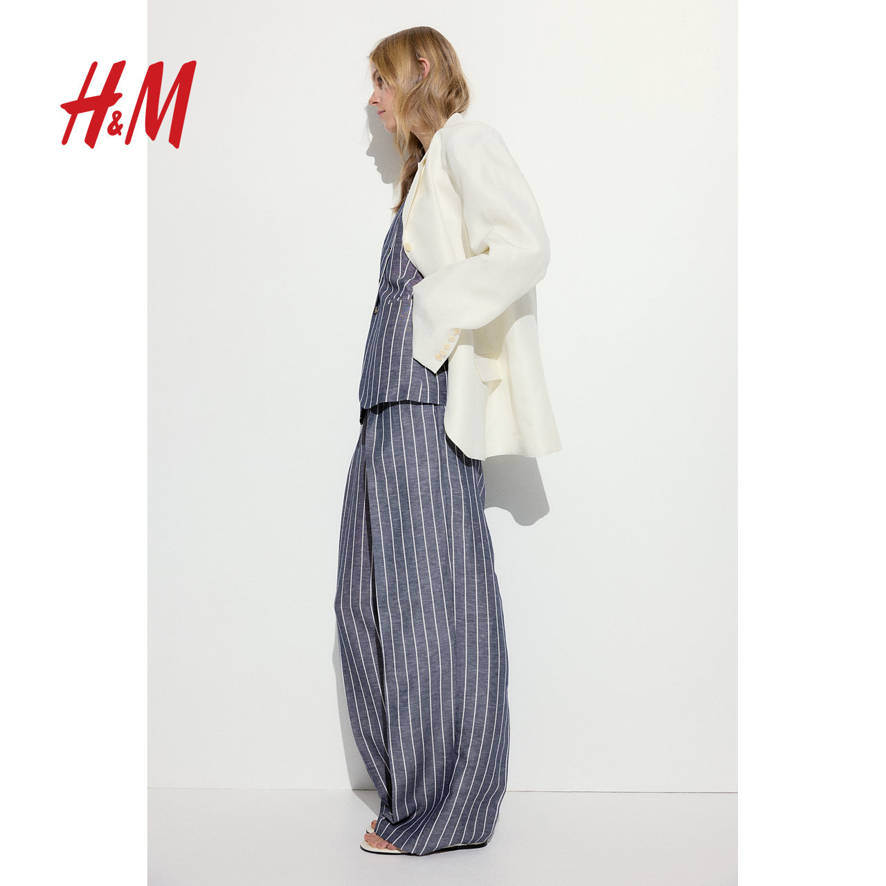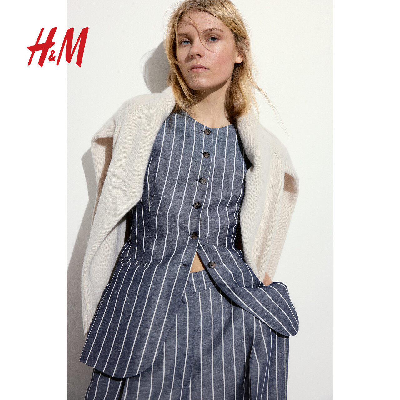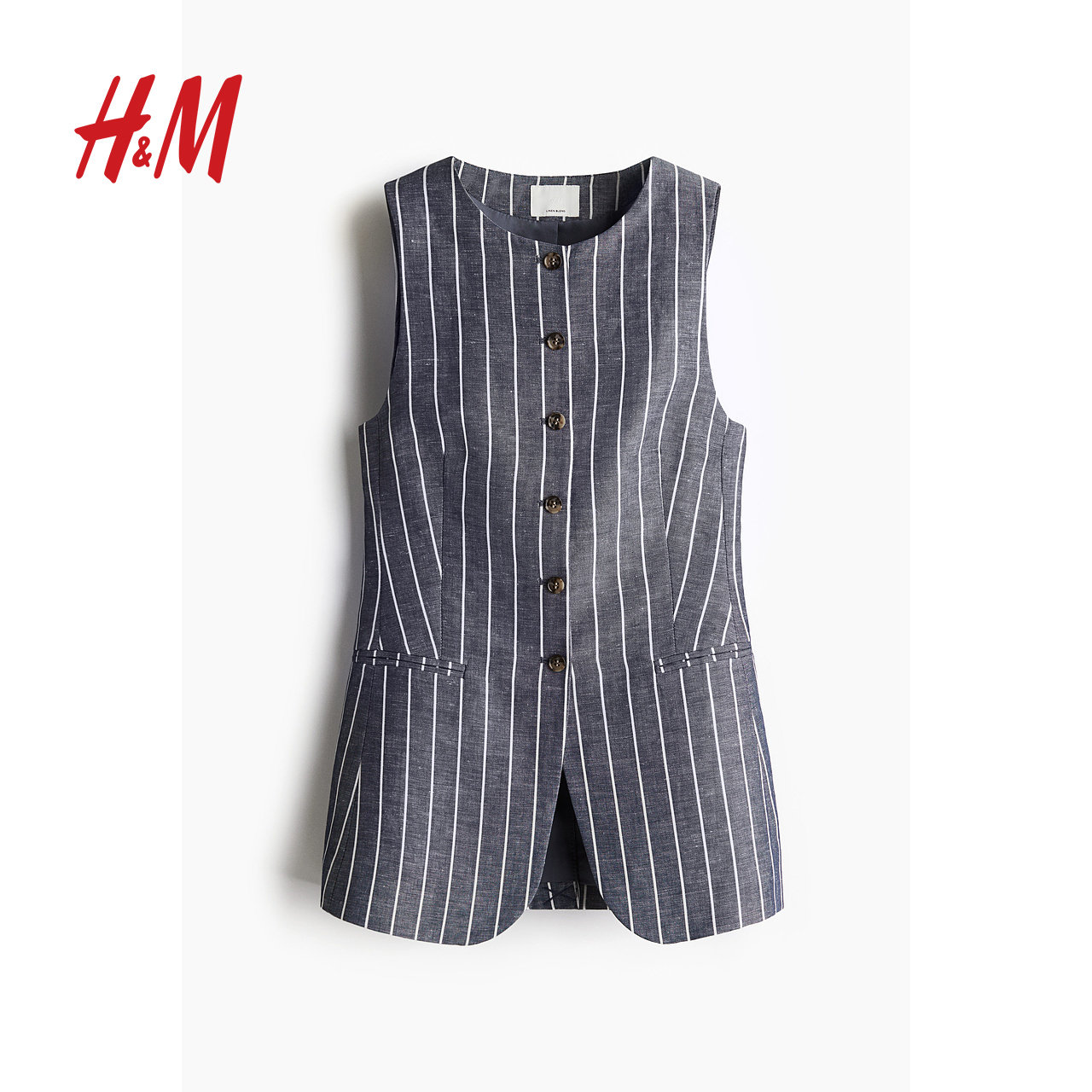 HM女装马甲春季圆领通勤无袖修身长款西装马夹1264279