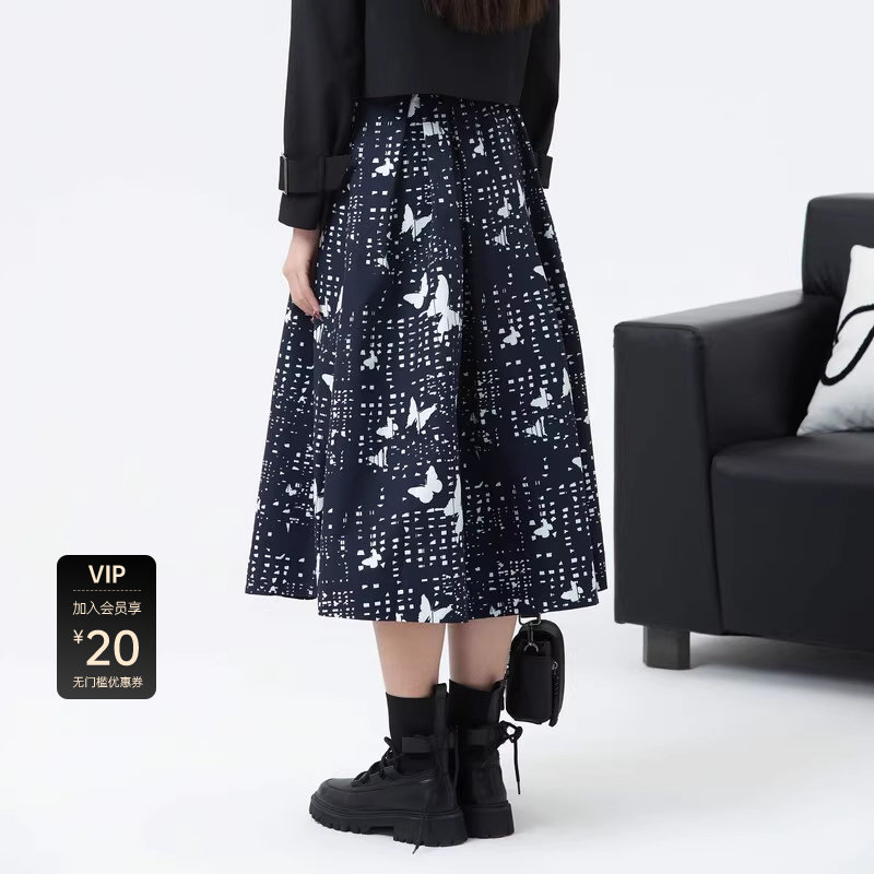 A字伞裙 百褶设计 撞色印花